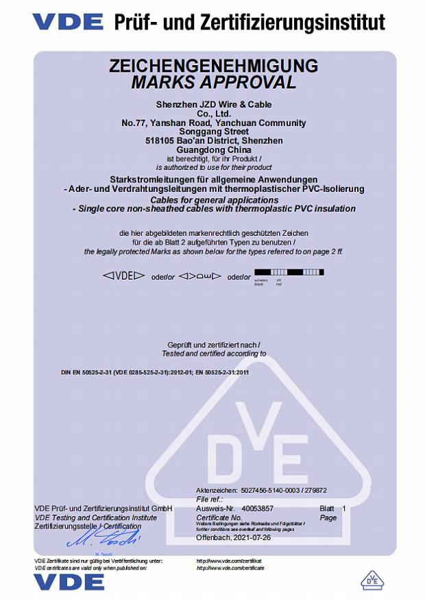德國VDE電線電纜資質認證20210721